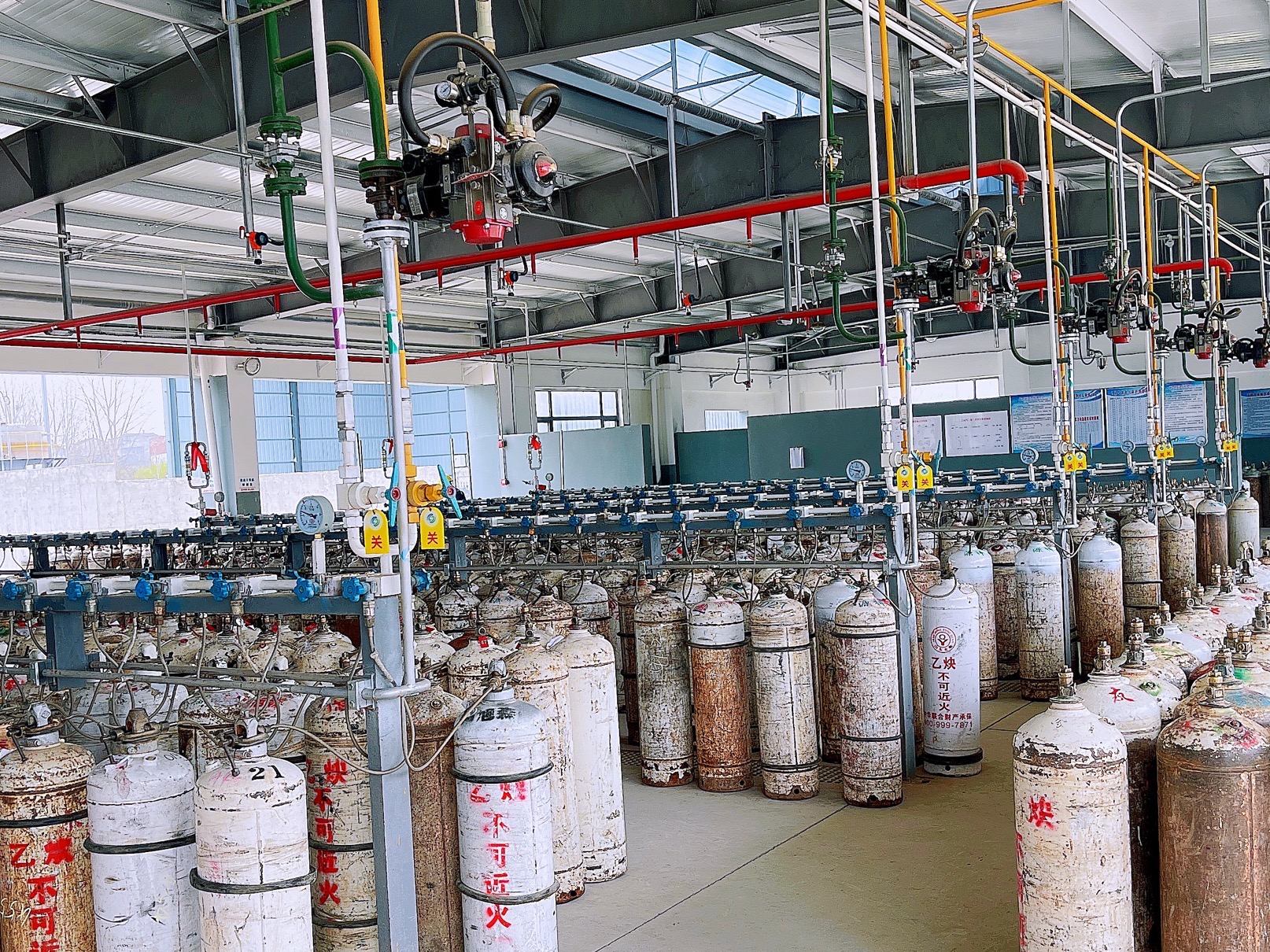 廠家?guī)私庖胰财恐谐涮疃嗫孜镔|(zhì)的作用是:1)把丙酮分散,使之增大與乙炔的接觸面,促進(jìn)乙炔的溶解與使用時(shí)的逸出;2)萬一乙炔分解爆炸,因孔的容積很小,能阻止爆炸的傳播,保證安全。**標(biāo)準(zhǔn)規(guī)定的技術(shù)要求是乙炔純度應(yīng)≥98%(體積分?jǐn)?shù))。其中磷化氫和硫化氫含量用硝酸銀試紙測試不變色或呈淡黃色。同時(shí)規(guī)定:乙炔瓶內(nèi)的乙炔壓力在溫度15℃時(shí)不大于1.52MPa。容積4...